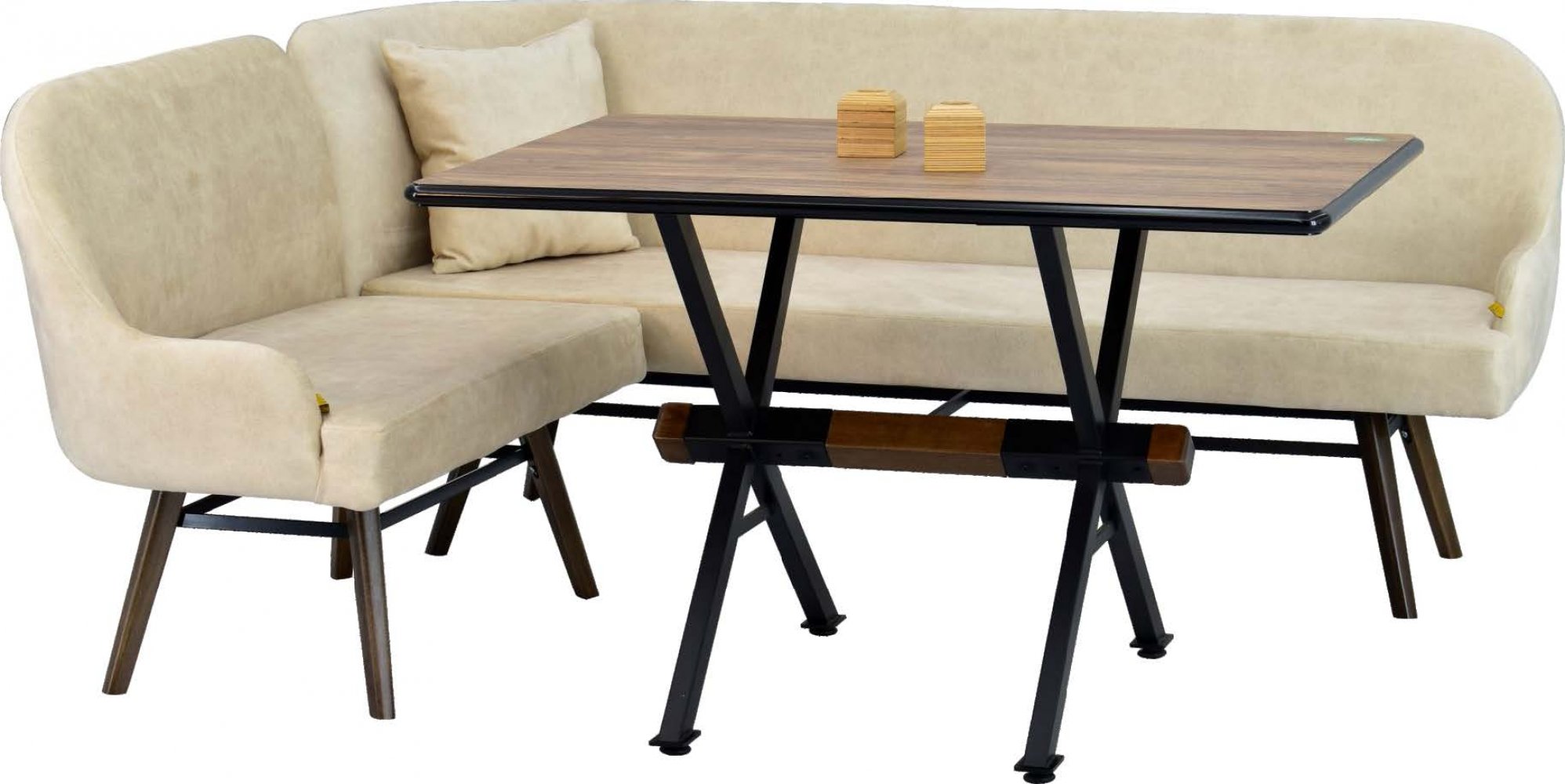 AKSA 02 80128 MDF Sabit Yemek Masası EFES 20 Kestane Ayak Krem Bank Kumaş Renkleri: Krem