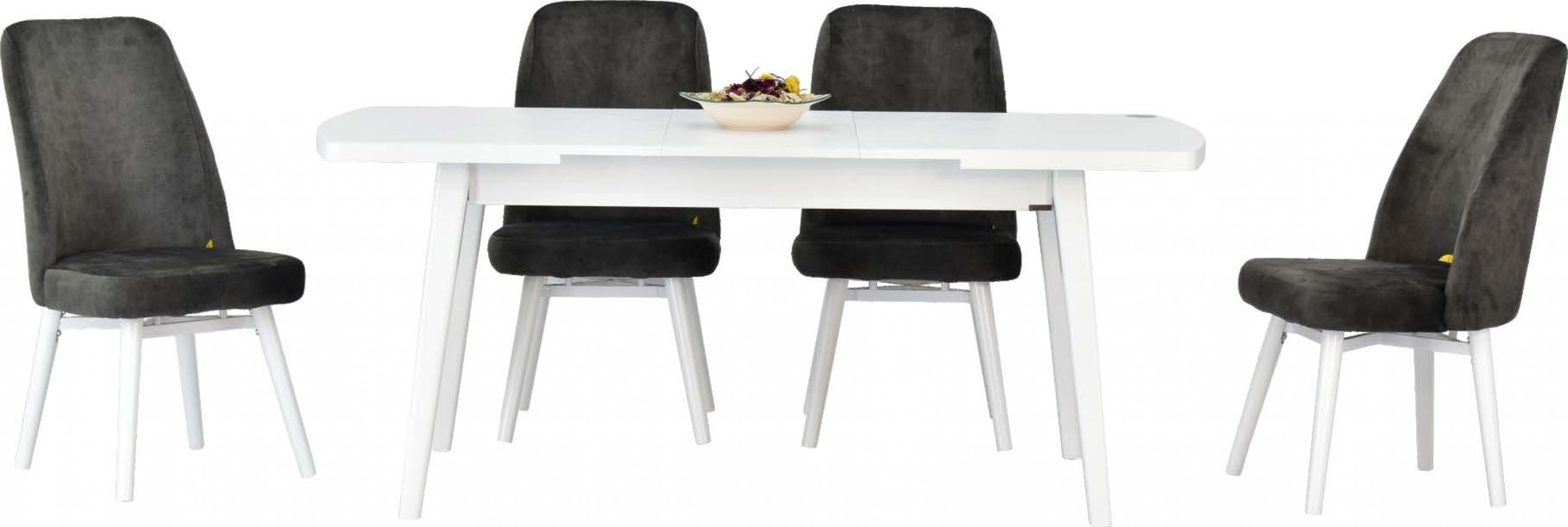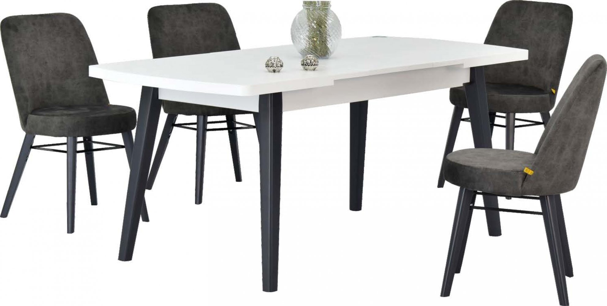 ARAS 81140 Açılır Beyaz MDF Yemek Masası ASGOLD Füme Ayak Gri Sandalye Kumaş Renkleri: Gri Sandalye Adeti: 4