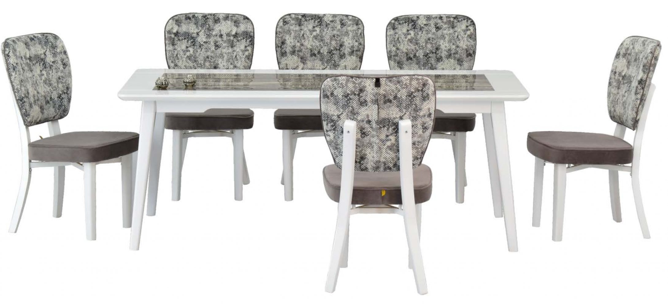 DAFNE 90190 Beyaz Granit Yemek Masası TARSUS Beyaz Ayak Gri Kombin Sandalye Kumaş Renkleri : Gri Kombin Sandalye Adeti : 6 SANDALYE ÖZELLİKLERİ Tarsus 07-04 Sandalye ÜRÜN ÖLÇÜ...