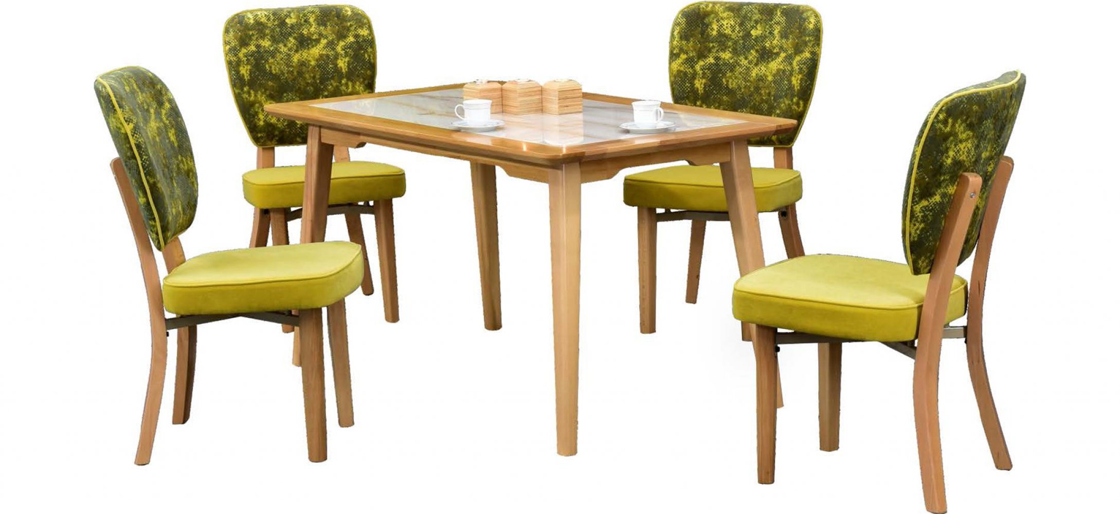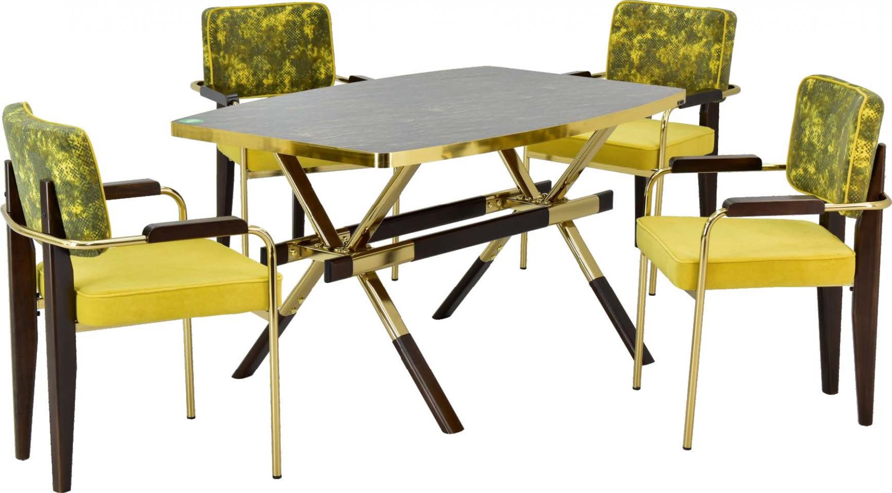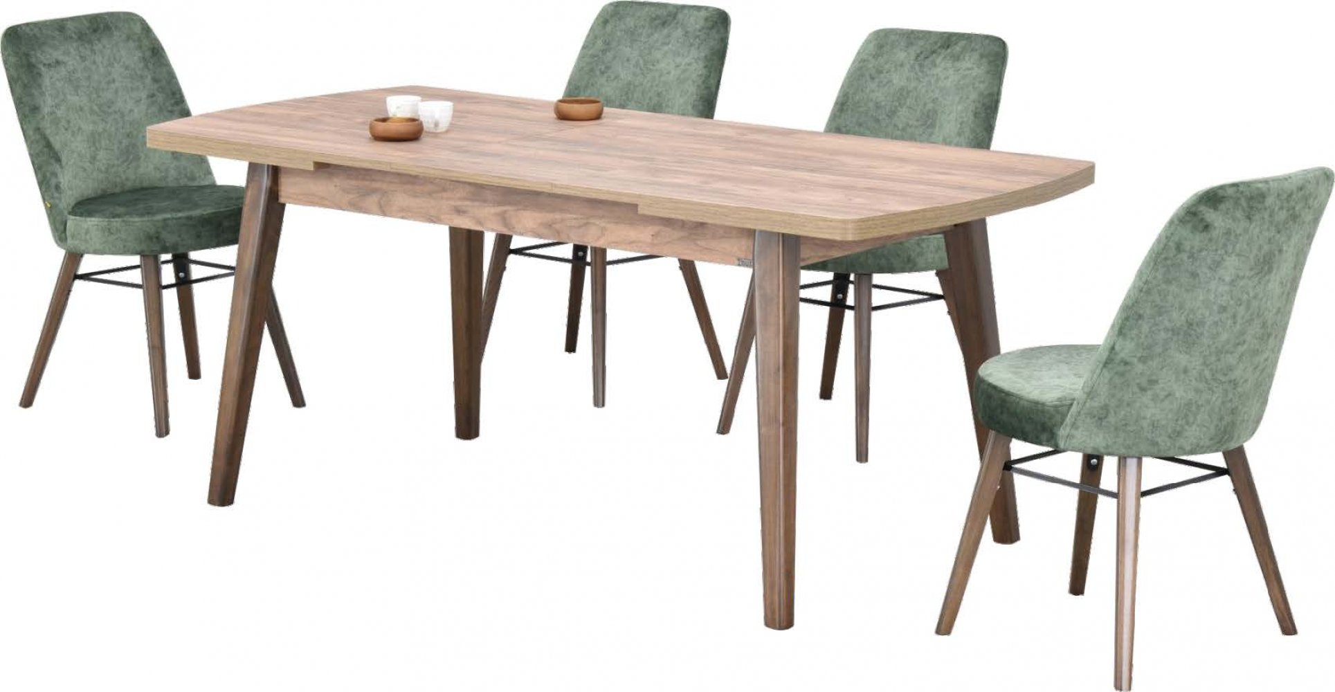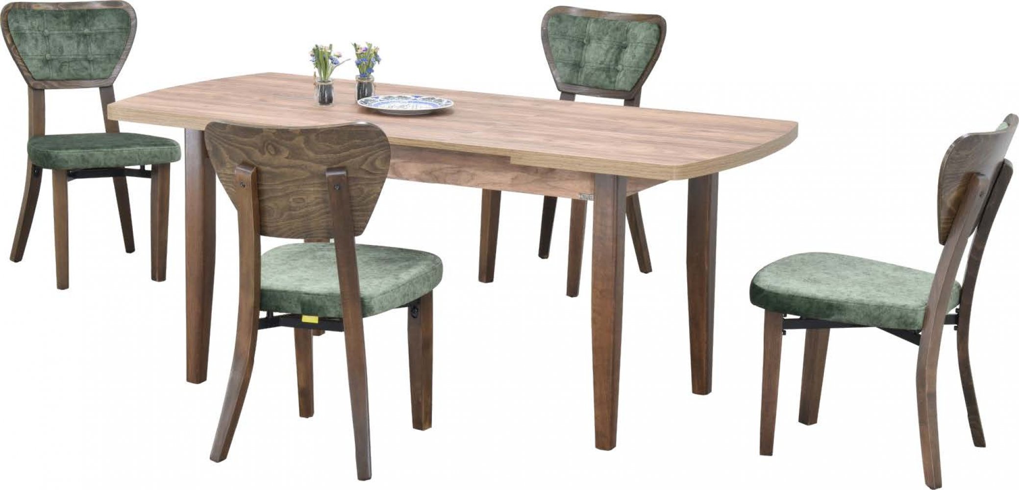 İstanbul Gold Ceviz Ahşap Ayak Giallo Masa Saray 23 Gold Ceviz Ayak Yeşil Kombin Sandalye Kumaş Renkleri: Yeşil Kombin Sandalye Adeti: 4
